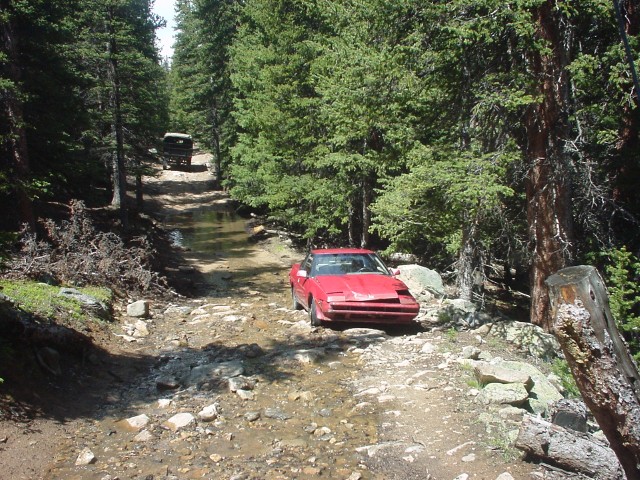 Through the gap in the trees, above my truck's right front, you can just make out the road heading up to Argentine Pass.