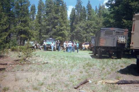 One of the Radio trucks and Bob N's Expedition head down the hill.